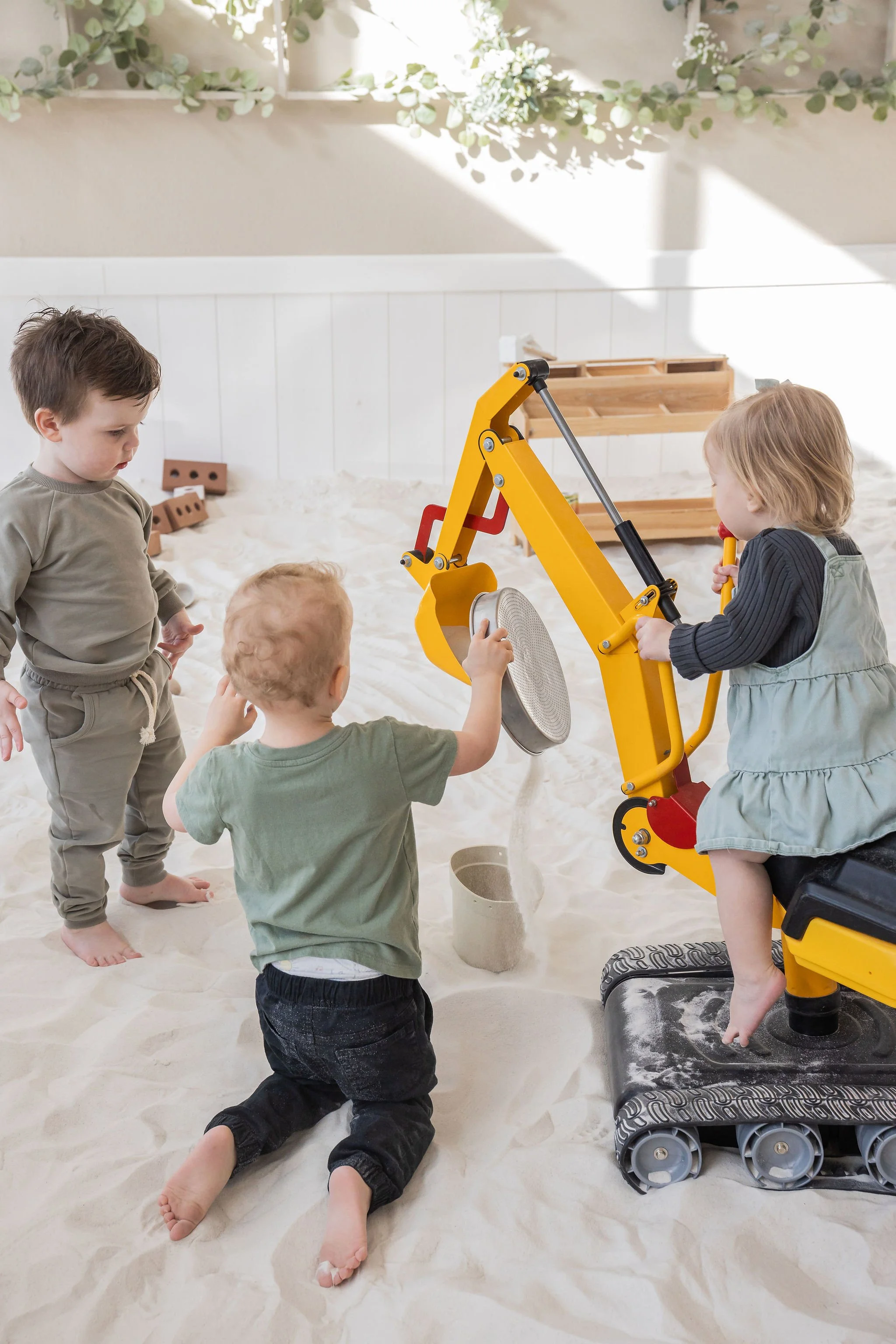 We have many toys, from sand tools to construction trucks, sit on diggers, market stand, slide, and much more! Your imagination won't be limited by the available toys. However, we ask that no outside toys be brought into the garden to avoid being lost, dirty, or broken.